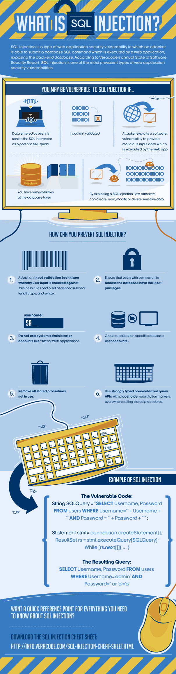 SQL Injection es una técnica de infiltración de código que se aprovecha de la no validación del ingreso de los datos en los formularios para insertar código SQL y de esta forma afectar negativamente los datos en la base de datos. En la siguiente infografía pueden encontrar como evitar esta vulnerabilidad y las soluciones para tener una aplicación web completamente segura.